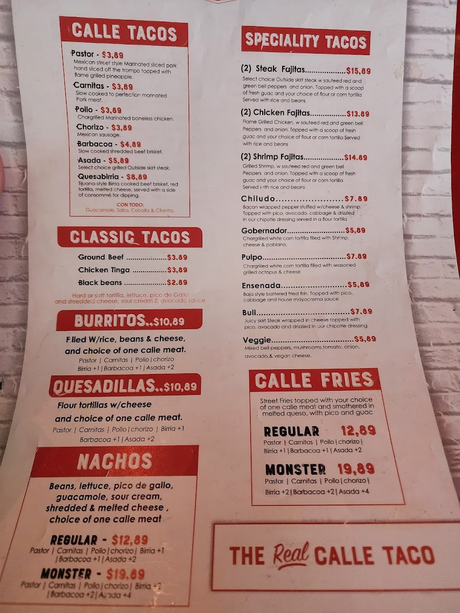 Each visit can end on a refreshing note with a selection from their cocktail menu, particularly the delicious margaritas that perfectly complement the bold flavors of the food. Whether you're here for a late-night snack or a leisurely dinner, Calle Taco promises a feast for the senses, making it a place worth revisiting time and again.